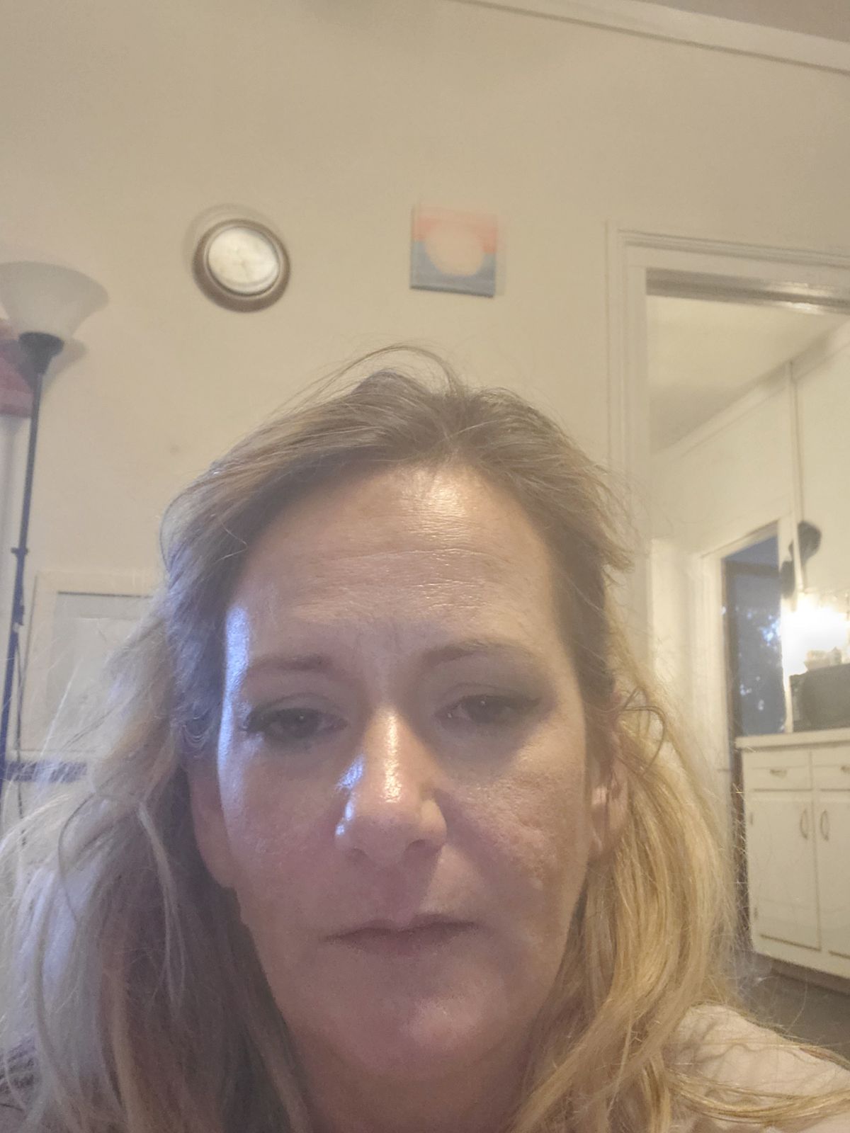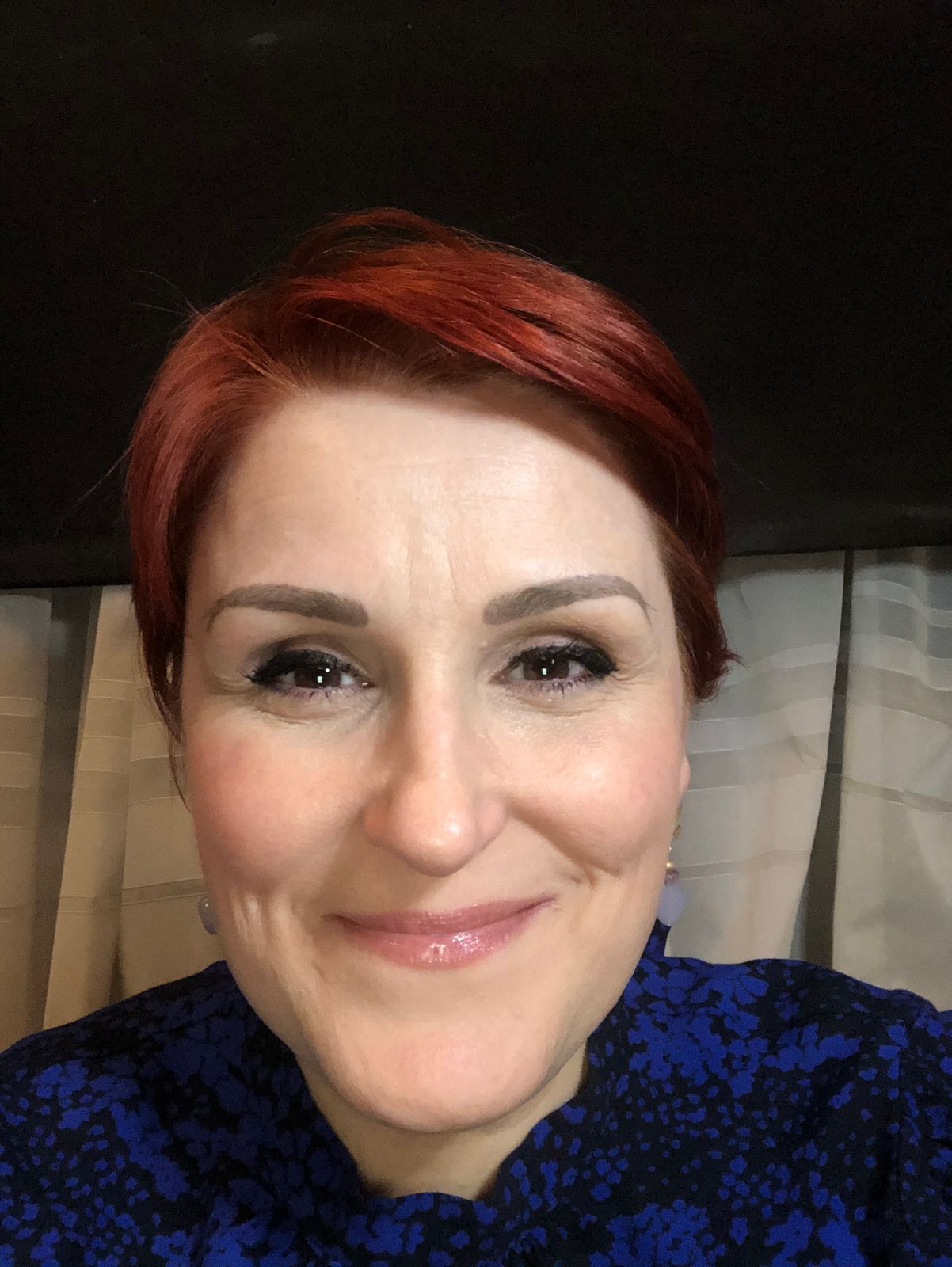Correct eyeliner sharpness, brow definition, mascara smudging or lipstick bleeds.
